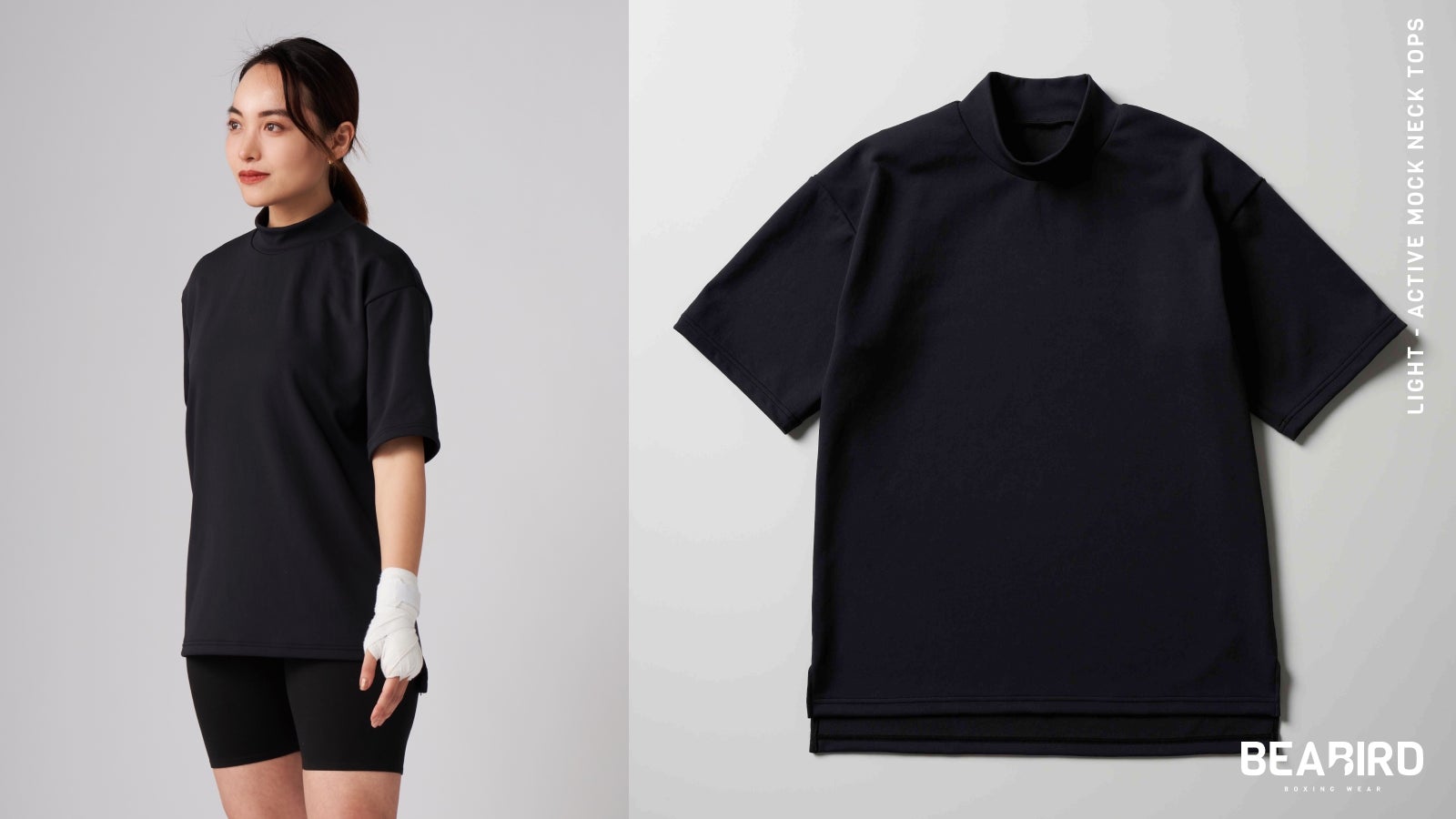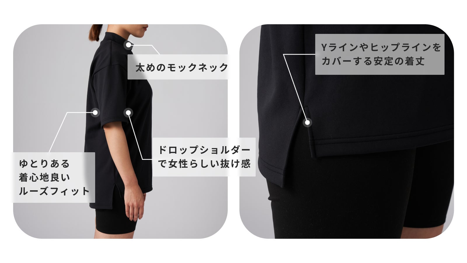 スポーツだけでなく、普段着でも着られるようにスポーツウェアではあまりないモックネックTシャツを制作しました。