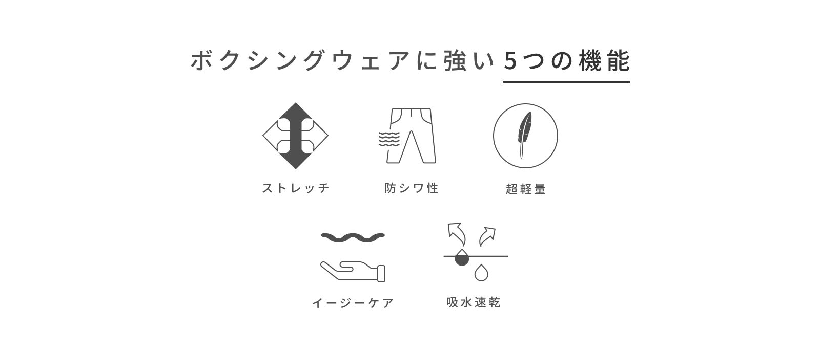 このNOBILUZA®️はボクシングウェアに最適な5つの機能を持ち合わせています。