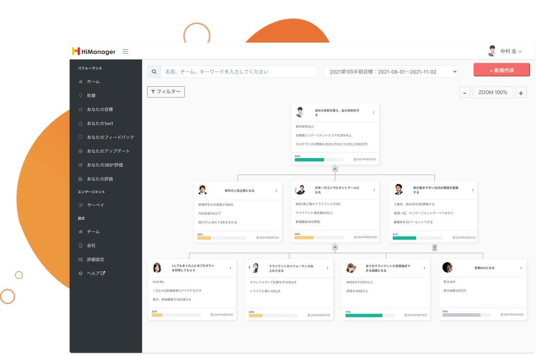 ▼HiManagerので可能なこと①|OKRにより組織の目標がすべて見える化