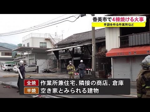 8日昼すぎ香美市で手袋を作る作業所や住宅など4棟が焼ける火事がありました。