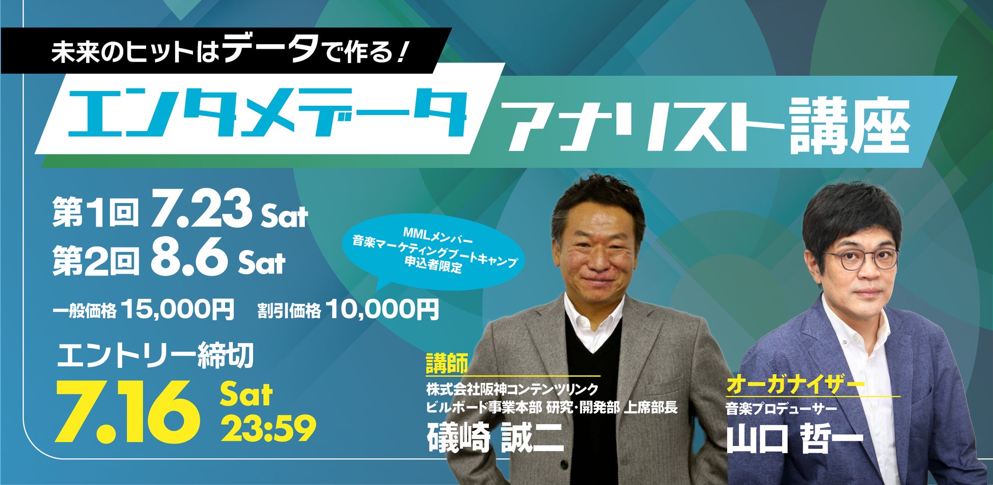 ※「エンタメデータアナリスト講座」受講生の方には、音楽マーケティング講座『音楽マーケティングブートキャンプ(第3期)』の15%割引チケットを差し上げます。