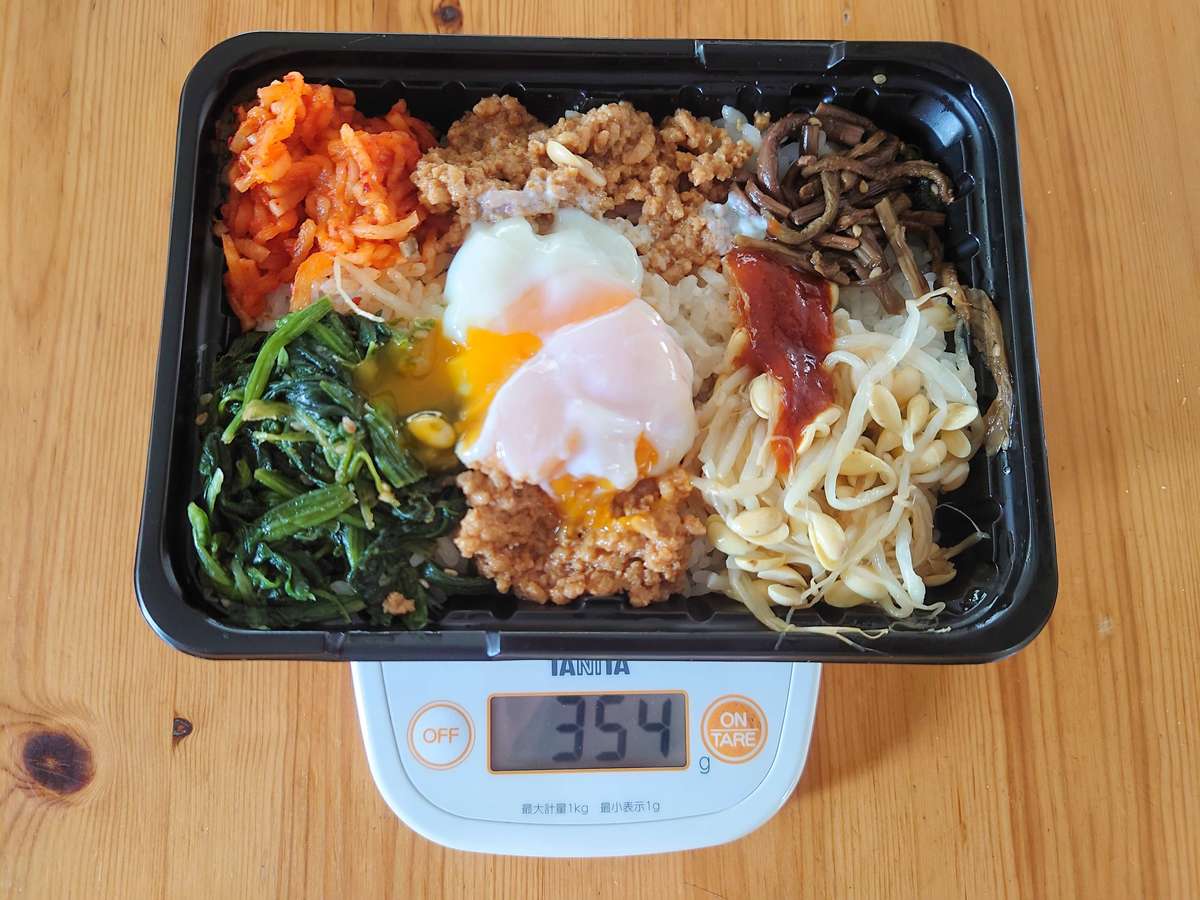 小ぶりな容器とあなどるなかれ!持つと重みを感じるビビンバ丼もこの通りの激安価格♪