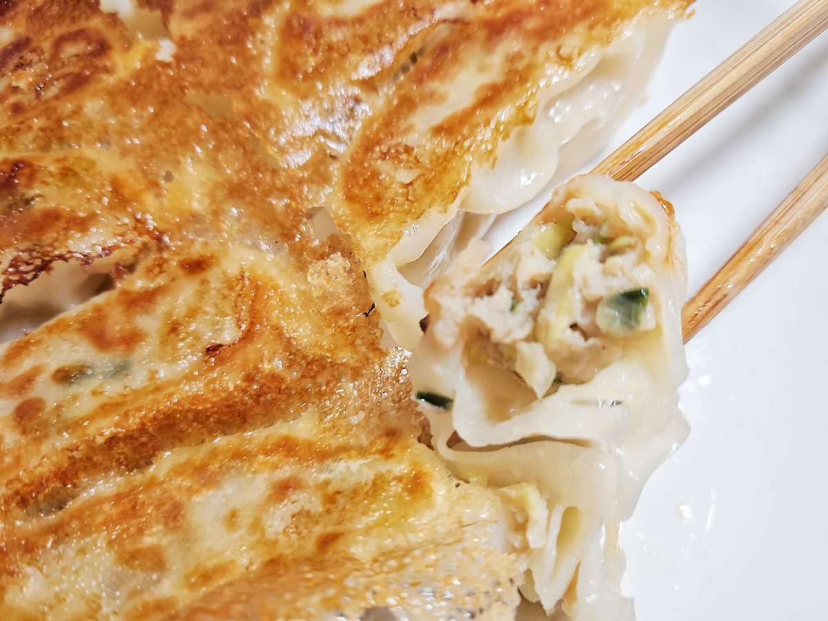 自分で作った餃子に羽根を作ろうとするとうまくいかないこともありますが、この「味の素 ギョーザ」は焼いているうちに勝手に出来てしまうから嬉しい。
