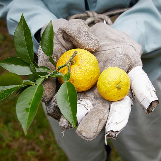 昭和の終わりから石川県能美市国造地区の新しい名産品となった国造柚子は、有機肥料だけで丹精込めて育てられています。