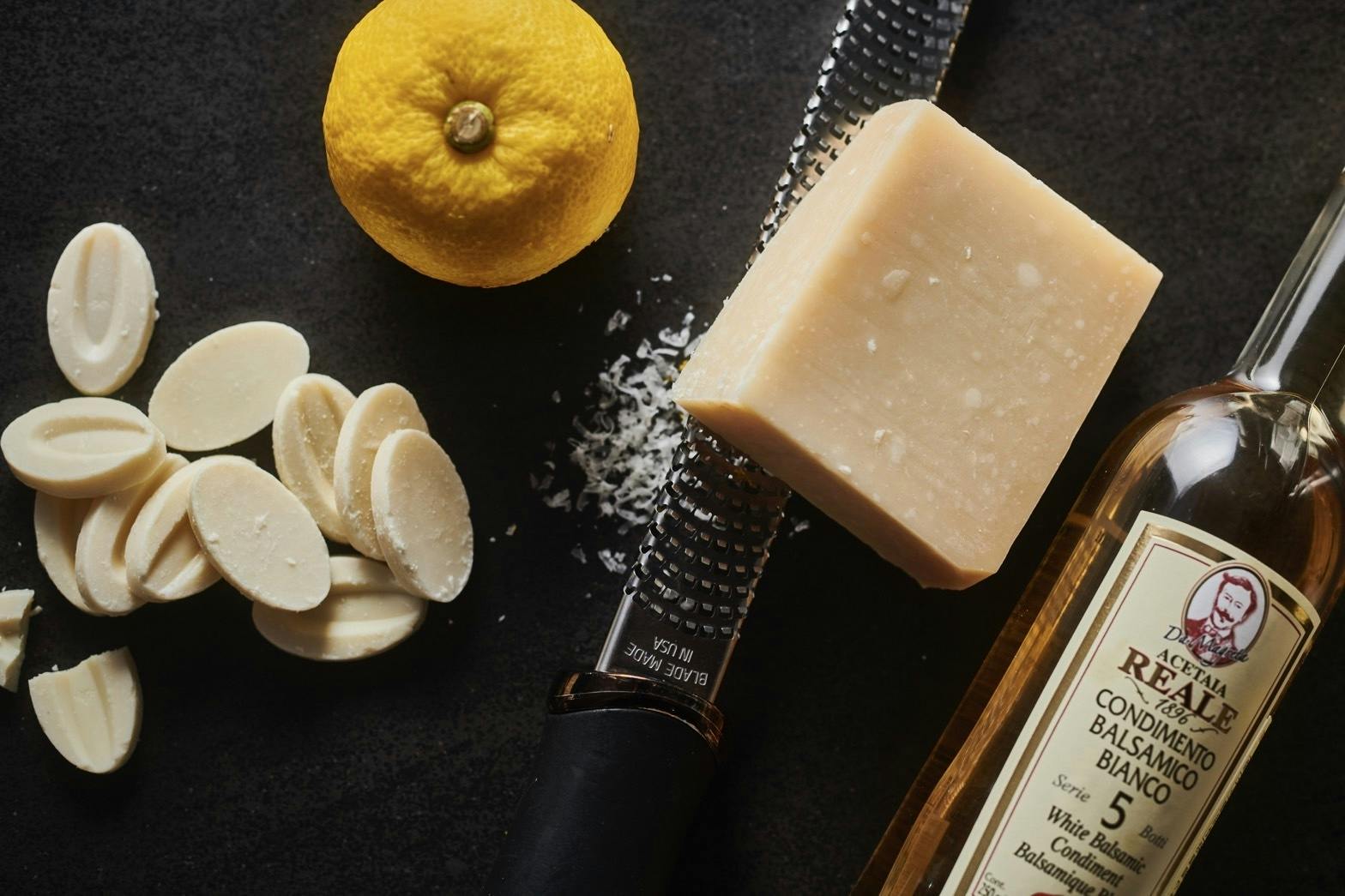ホワイトバルサミコ酢の配合のバランスを変えるだけで、チーズケーキの表情がガラッと変わります。