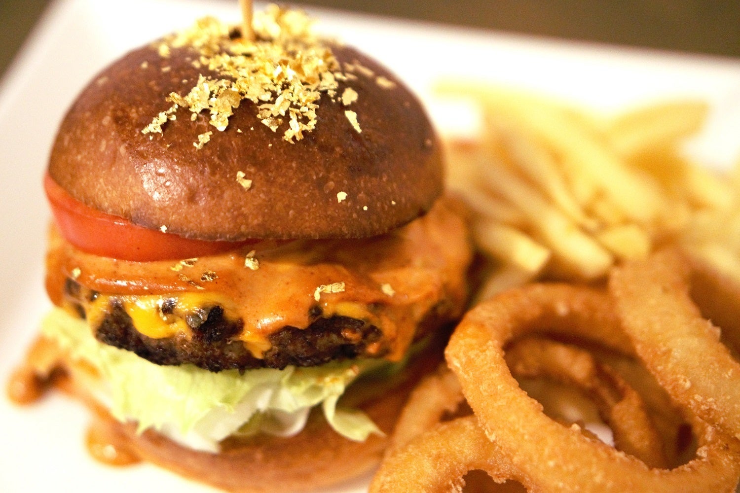 肉の旨みを引き立てるソースは、オリジナルスパイスとマヨネーズを合わせた、ピリッと辛みの効いた自家製スパイスソース。最後に金沢らしい金箔を贅沢にふりかけて、黄金に輝くTSUZUMIバーガーの完成です。こだわりのトッピングとソース、ハンバーガーを構成するひとつひとつの要素にグランシェフの技が光ります。