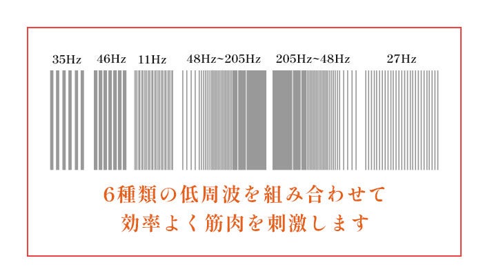 ⻑年、エステサロンなどで使われている業務用の美容機器のOEMをおこなってきたmoiseが自宅でもエステと同じ ような結果を出せるEMSを搭載。6種類の低周波で効率よく筋肉を刺激します。