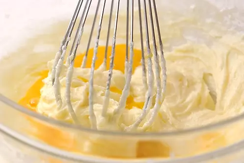 1、ボウルにバターを入れて泡立て器でよく練り、砂糖を2~3回に分けて加え、白っぽいクリーム状になるまでよく混ぜ合わせる。さらに溶き卵を少しずつ加え、よく混ぜ合わせる。