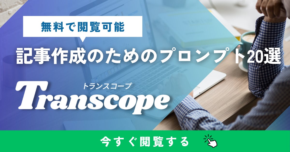 シェアモル株式会社(本社:東京都墨田区、 代表取締役:齋藤 康輔)は、2023年6月30日、SEOに強いAI(GPT-4)ライティングツール「Transcope(トランスコープ)」の運営ノウハウを基に、ChatGPTでSEOに強いブログ記事を作るためのプロンプト20選を公開しました。
