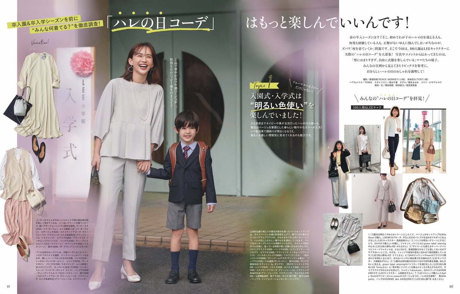 山岸<卒入学式など、家族のハレの日の服選びで一番気になるのは、“ほかの皆が何を着ていくのか”という「横の目線」だと読者世代との対話を通して気づきました。非日常シーンの装いに不安を抱く読者にとって、雑誌から“これが素敵なんです”と提案されるよりも、先輩ママたちの”これがよかったよ!”という声は何より心強いアドバイス。その声を徹底的に集めようと、実際の写真を100枚以上お借りして分析。当事者視点で求められている情報は何か、その切り口を練りました。読者の反響も多くいただき、“役に立つ情報”として受け取っていただけたことがうれしかったです>