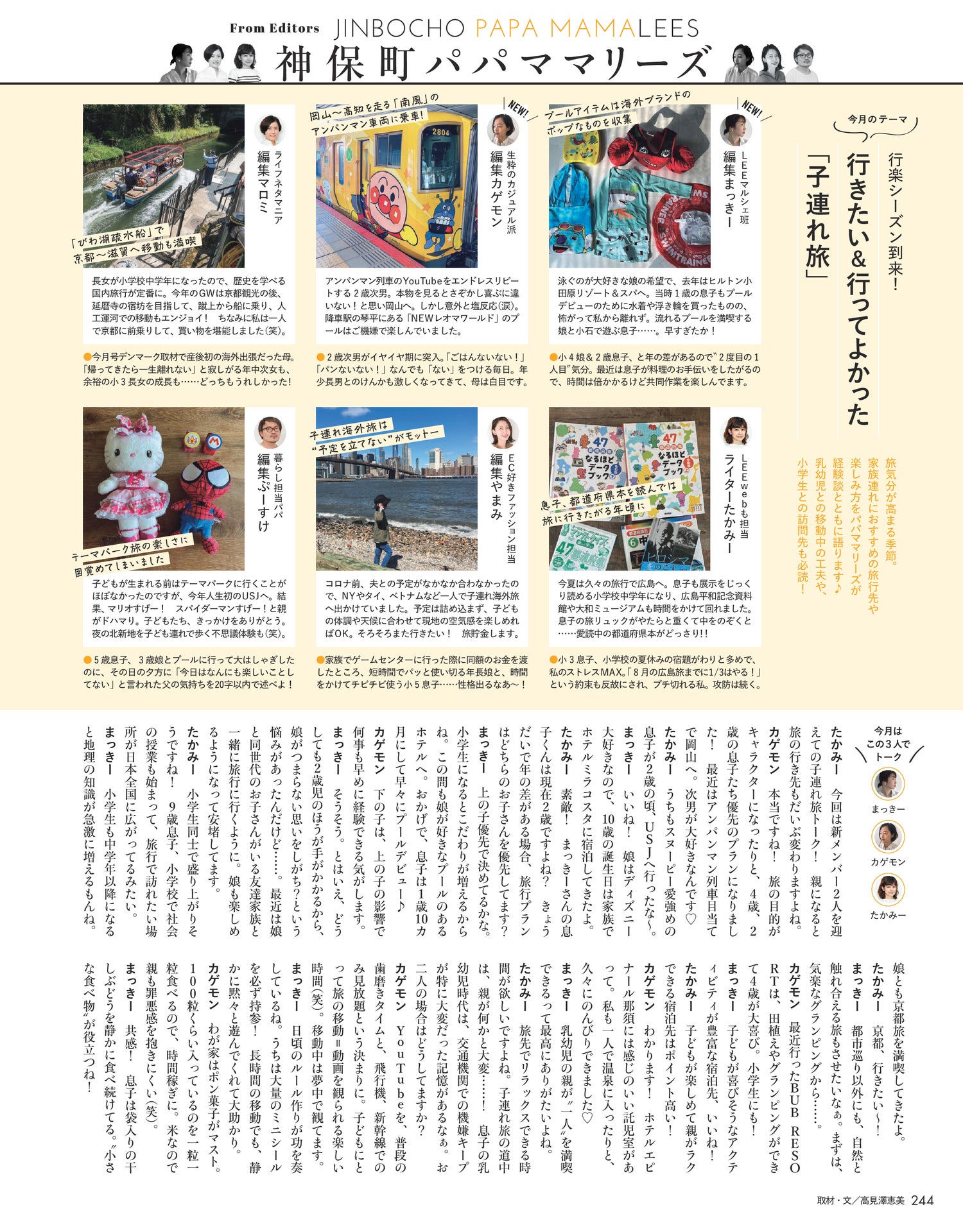 山岸成実(以下、山岸)<ファッションの担当ではありますが、普段の生活の実感を込めた読み物企画が採用されるとうれしいですね。仕事や子育ての悩み、友人との集まりで出た話題、ふと心に引っかかったことなど、日常のすべてが企画の大事な種です。悩みやモヤモヤは、企画として出した瞬間に消化される気がしますし、読者の方から反響をいただけた時は、モヤモヤ万歳!の気持ちです(笑)>