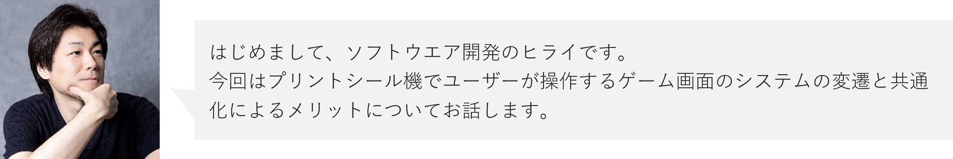 以前は「ゲーム」と「落書き」はシステムも言語も違っており、それぞれが独自で技術ノウハウを蓄積していました。しかし、市場で求められる要件(前述)の実現や新技術の導入など、プリ開発が達成しなければならないことは様々です。そこで、開発をスムーズに進める土台の構築として、2020年発売機種から段階的にシステムをUnityへ共通化(置き換え)。2023年発売新機種は全て、システムをUnityに置き換えました。