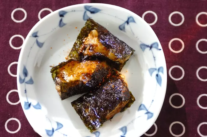 深めの耐熱容器に餅を入れ、お餅が浸る程度の水を入れます。ラップをしないで600Wで2分加熱し、水気を切ったら完成です。様子を見て固かったら10秒ずつ加熱しましょう。レシピではのり佃煮・チーズ・ゴマ油で味つけして、焼きのりを巻いていただきます。のりチーズ餅