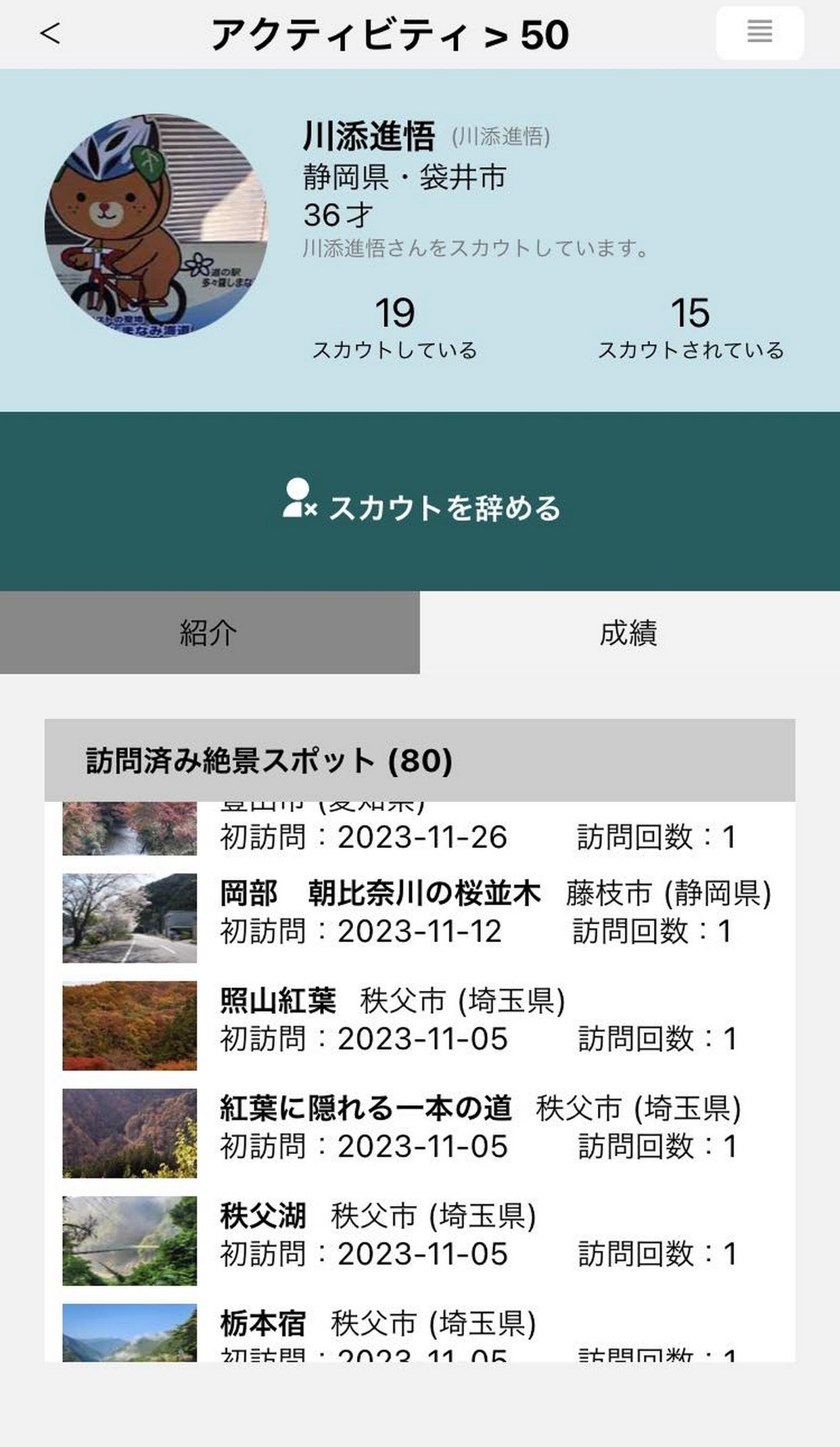 記録したGPSデータに写真と文章を足し加えることで、共有できるページが自動作成されます。このデータを用いて、新規「絶景スポット」を作成したり、走行中に通過したルート、施設や絶景スポットを評価したりすることができ、統計データと合わせてサイクリングマップに反映されます。